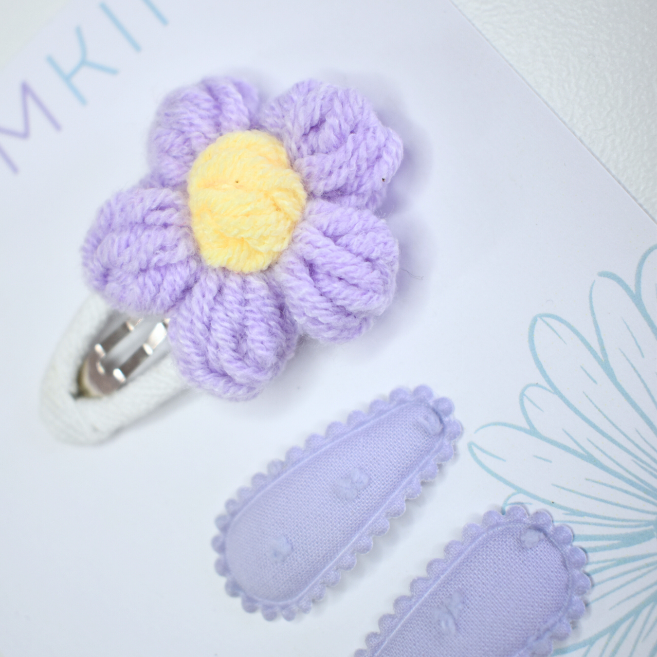 Crochet Soft Violet flower & Tiny Clips - Set of 3